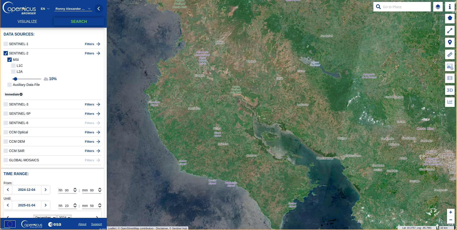 To download any satellite image from the Copernicus Sentinel Missions we can use Copernicus Data Space