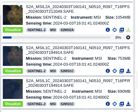 In my case, I wanted a clear image with atmospheric correction, so I proceeded to download the L2A product.