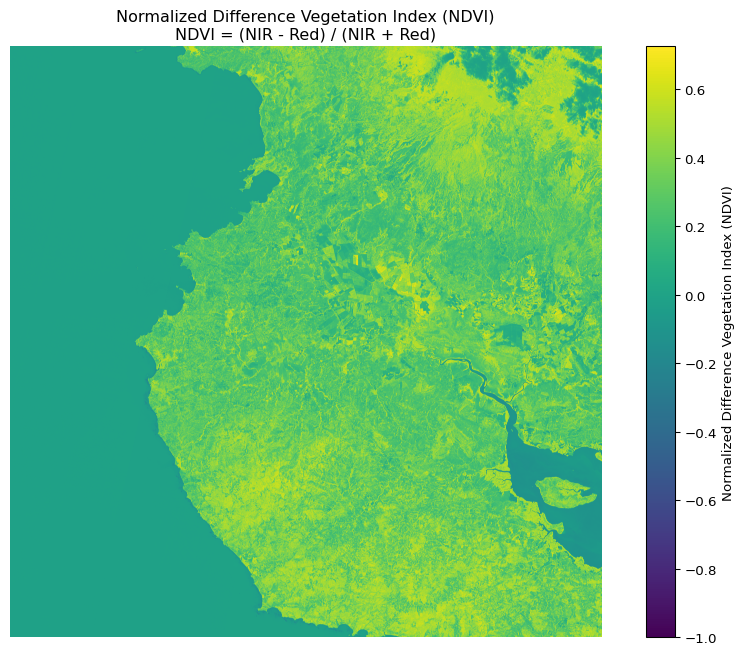 'NDVI = (NIR - Red) / (NIR + Red)')